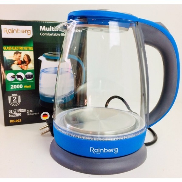Електричний чайник скляний Rainberg 1.8 л RB-902 з LED підсвічуванням
