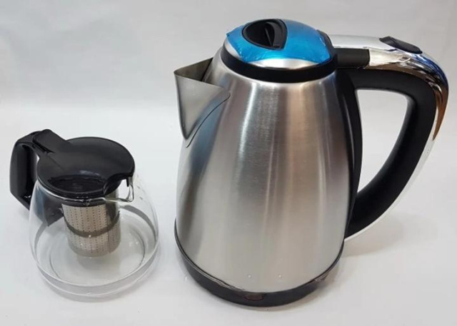Електрочайник впевнено займає важливе місце у нашому побуті. Вирішальний фактор – зручність у використанні та швидкість закипання води. Електрочайник є екологічно чистим, удароміцним, із зручним в обслуговуванні матеріалом, покриття нагрівального елемента – нержавіюча сталь. Особливістю комплекту є підставка та заварник, в якому ви зможете не відходячи від місця заварити свій улюблений чай.