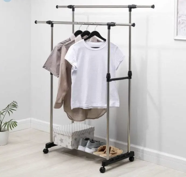 Телескопічна стійка для одягу Double Pole DC-0028, 155/75/35см - повністю збірна, і її можна подовжити і зробити вище, або зробити вже або нижче.