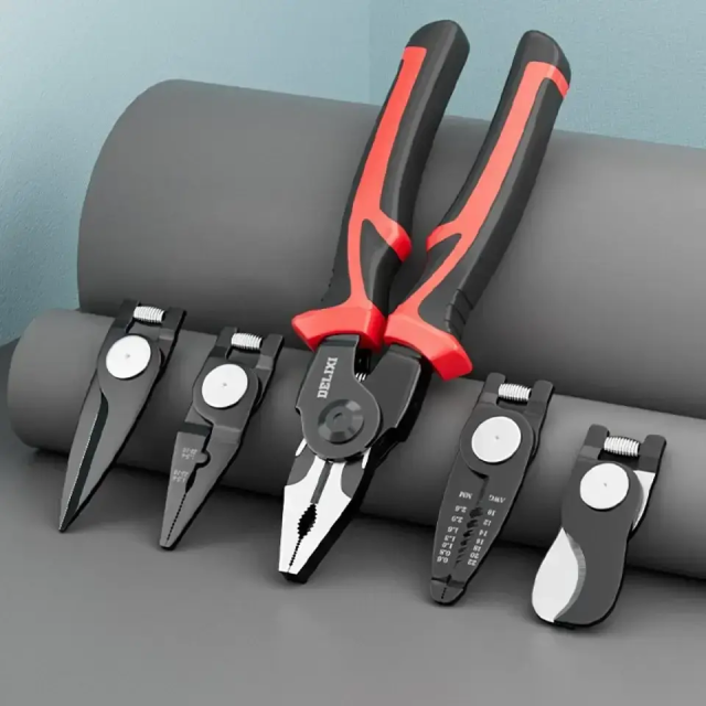 Забудьте про необхідність нести багато важких інструментів! Набір плоскогубців – ваш універсальний інструмент, який легко змінює свою функцію, стаючи кусачками, бокорізами, стрипером або металевими ножицями.