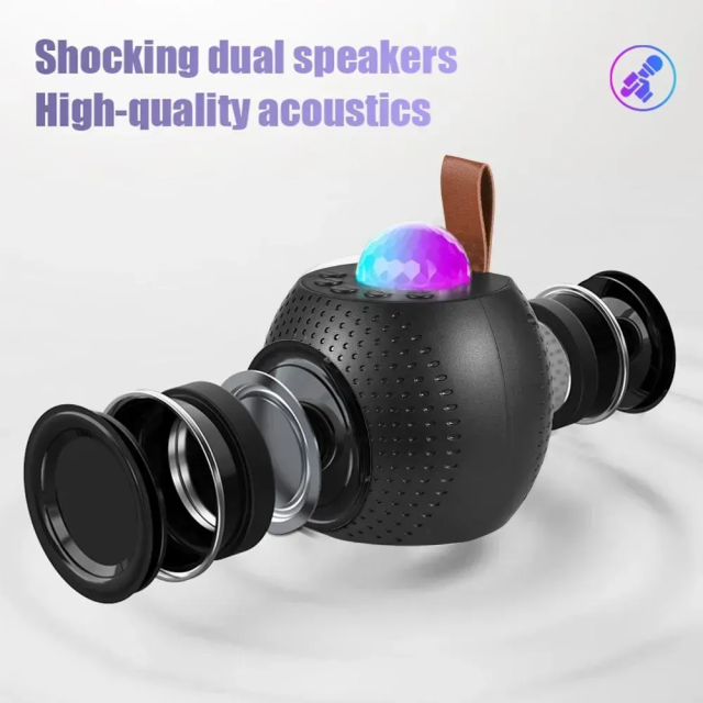 Створіть справжню KTV-атмосферу завдяки плавному пульсуванню світлових кульок, які змінюють колір у ритмі музики. Чарівний ефект зміни голосу додасть веселощів вашому співу, а подвійний мікрофон дозволить влаштувати дует із друзями.