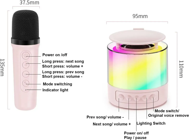 Відчуйте ритм улюблених хітів де завгодно з цією компактною караоке-колонкою Bluetooth. Вбудований мікрофон і потужність 5 Вт перетворять будь-яке приміщення на справжню сцену — ідеально для вечірок, кемпінгу або поїздок в автомобілі.