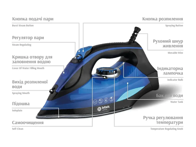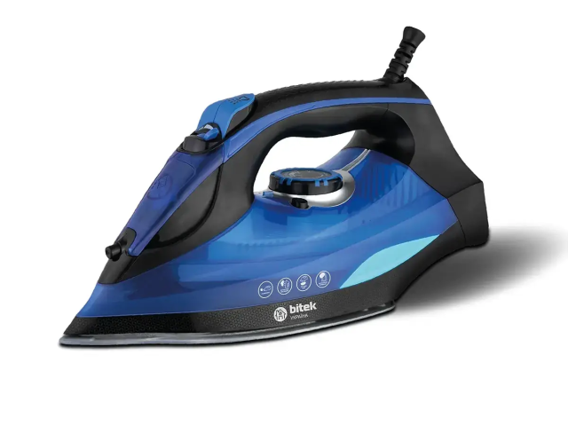 Праска BITEK BT-1321B покращеної якості та збільшеної потужністю з керамічною підошвою та регульованим потоком пари.