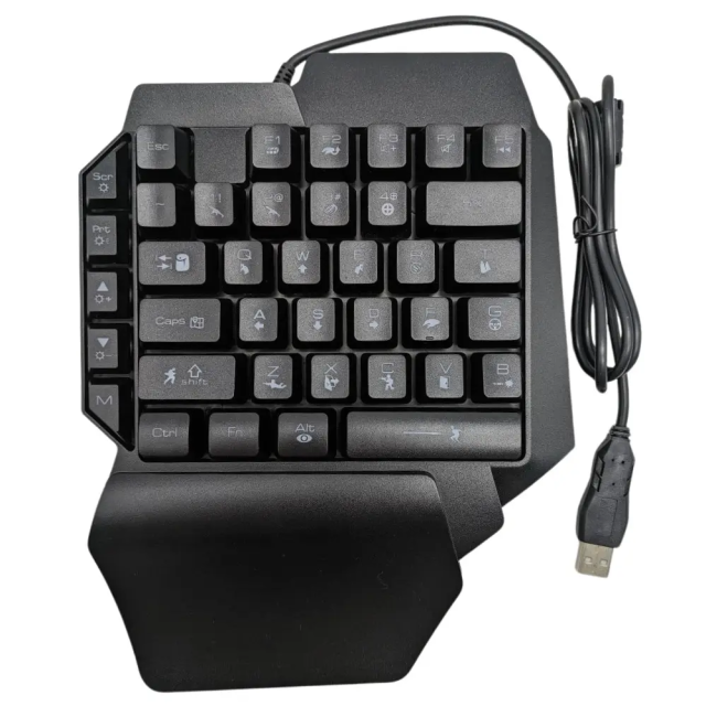 Клавіатура в комплекті є мембранною з проводом та підключається через USB, що забезпечує стабільне з'єднання без затримок. Вона має статичне RGB підсвічування, що додає стильного вигляду ігровій зоні, а м'який хід клавіш забезпечує комфорт під час тривалих ігрових сесій. Корпус з ABS-пластику з soft-touch покриттям не лише приємний на дотик, але й стійкий до зносу.
