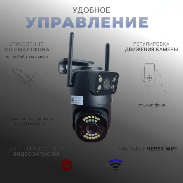 Завдяки підтримці Wi-Fi та функції PTZ-керування, користувач може віддалено повертати камеру, змінювати кут огляду та використовувати 10-кратне цифрове збільшення. Пристрій оснащений герметичним корпусом із захистом IP66, що гарантує роботу навіть у складних погодних умовах.