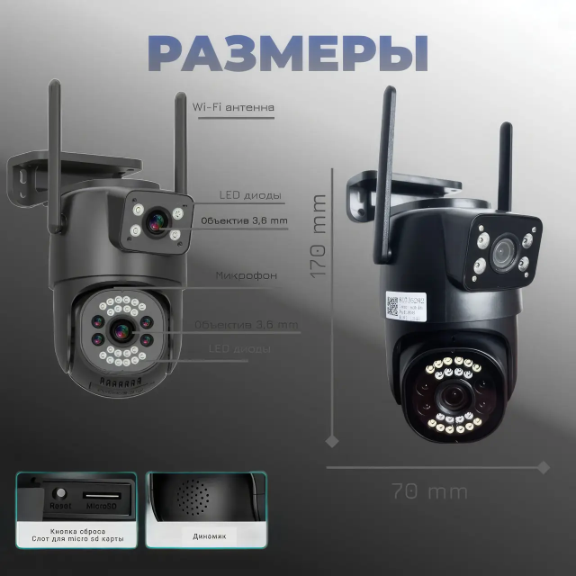 Кількість об'єктивів: 2 (3+3 Мп), фокусна відстань 3,6-16 мм.