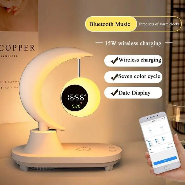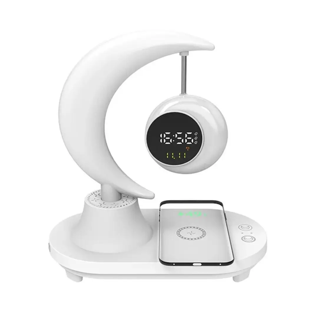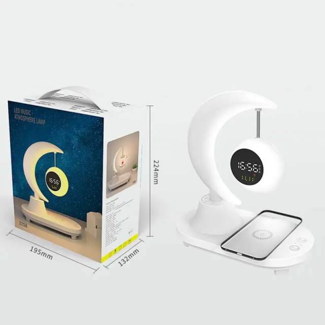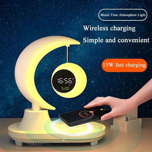 Універсальність та практичність: компактний дизайн та функціональність “5 в 1” роблять цю настільну лампу ідеальним вибором для використання в різних приміщеннях, забезпечуючи освітлення, звук, бездротову зарядку та багато іншого.