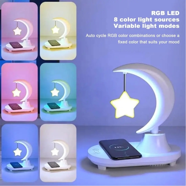 Настільний світильник та нічник “Місяць із зіркою та зарядкою телефону” моделі TB-35SLIWBT – це елегантний та функціональний світильник, який стане чудовим доповненням до вашого інтер'єру. Він поєднує кілька корисних функцій, щоб задовольнити ваші потреби.