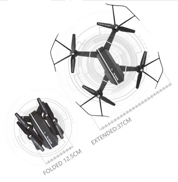 Розмір квадрокоптера: 27x19.5x5 см.